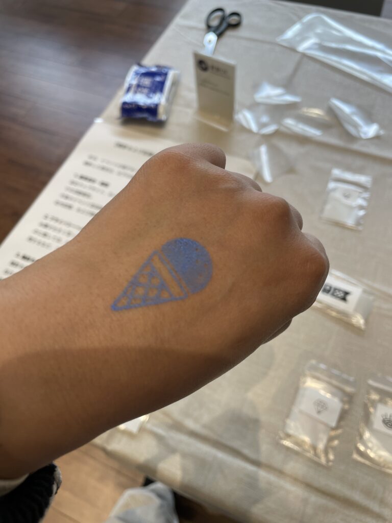 米油などを原材料にした肌にやさしいインクとデザイン付き専用スクリーンを使ってボディペイントなどが楽しめます。