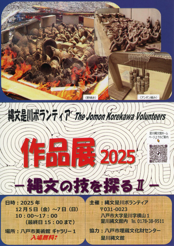 会期│12月5日(金)〜7日(日)10:00~17:00(最終日15:00まで) 場所|ギャラリー1 入場料|無料 主催│縄文是川ボランティア